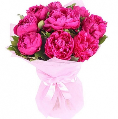 Букет из малиновых пионов в натуральной упаковке с добавлением салала.