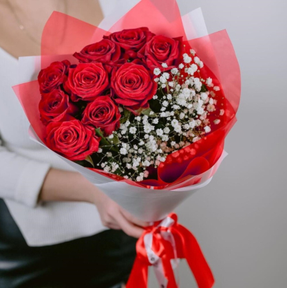 Букет из красных роз и гипсофилы | Купить в Остраве