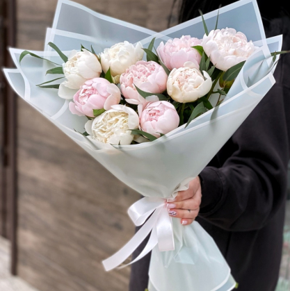 Букет 9 пионов в матовой пленке | Купить в Остраве