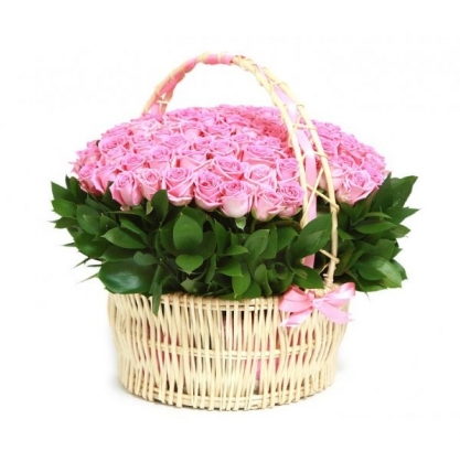 Купить 101 розовую розу в корзине с доставкой в Остраве