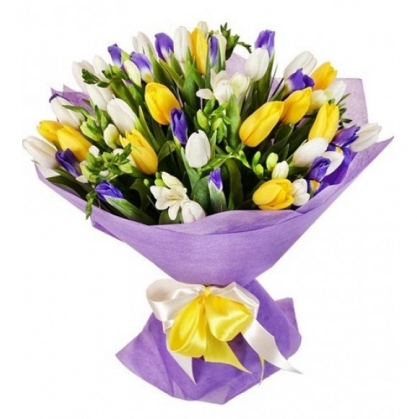 Букет "Три желания" из тюльпанов, ирисов и фрезии | Купить в Остраве